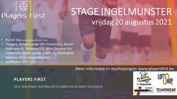 Op 26 augustus organiseert SV Ingelmunster in samenwerking met PlayersFirst voetbalstage voor jonge voetballers. Voor meer info,